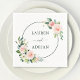 This wedding paper napkin features painted watercolor flowers in blush pink, white, and green foliage with a circle frame. For more advanced customization of this design, Please click the "Customize further" link.