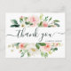 This wedding thank you postcard features painted watercolor flowers in blush pink, white, and green foliage. For more advanced customization of this design, Please click the "Customize further" link. Matching items are also available.
