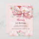 A girly blush pink background, decorated with a large pink bow and pink flowers. Text: She's a Cute One. Personalize and add a name and party details.