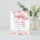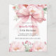 A white background, decorated with a large pink bow and pink flowers. Personalize and add a name and party details.