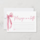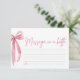 The "Blush Pink Bow: She's Tying the Knot" Message In A Bottle Game Card is a unique and sentimental activity for guests to participate in at the bridal shower. Each guest is provided with a card where they can write a heartfelt message or piece of advice for the bride-to-be. These cards are then placed inside a decorative bottle, creating a beautiful keepsake for the bride to read and cherish long after the shower is over. It's a meaningful way for guests to share their love and well wishes as the bride prepares for her special day.