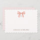 Celebrate refined simplicity with this blush pink bow watercolor monogram note card.