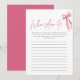 Blush Pink Bow Who Am I Bridal Shower Game Card