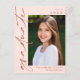 Elegant blush pink graduation announcement postcard personalized with a photo, the graduate's name, the name of the school, and the year. Add an about our graduate on the other side of the grad announcement postcard. Graduate is written across the left side of the postcard in a signature script in a brass-inspired hue.