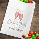 this design features a simple minimalist bridal shower elegant candy favor bag, a brunch and bubbly classic template, a chic calligraphy script typography, bridal shower candy favors treat, pink champagne wine glasses flute, celebration celebrate toast bubbles, a bridal shower party favor supplies, a food safe party packaging package, bridal shower treat candy bag, bridal shower brunch and bubbly