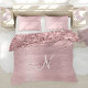 Blush Pink Brushed Metal Glitter Monogram Name Duvet Cover