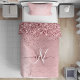 Blush Pink Brushed Metal Glitter Monogram Name Duvet Cover