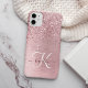 Blush Pink Brushed Metal Glitter Monogram Name iPhone 15 Case