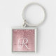 Blush Pink Brushed Metal Glitter Monogram Name Keychain