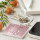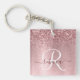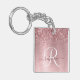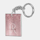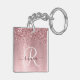 Blush Pink Brushed Metal Glitter Monogram Name Keychain