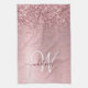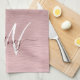 Blush Pink Brushed Metal Glitter Monogram Name Kitchen Towel