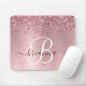Blush Pink Brushed Metal Glitter Monogram Name Mouse Pad