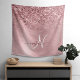 Blush Pink Brushed Metal Glitter Monogram Name Tapestry