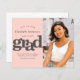 Make sure all your friends and relatives will be able to celebrate your graduate’s milestone graduation! Send out this stunning, simple, modern, personalized photo “Save the Date” budget announcement for an event to remember. Bold, graphic, soft gray typography overlays a blush pink background. On the right hand side, add a photo of your choice. Personalize the custom text with your graduate’s name, class year and date. Your custom message and a blush pink graduation cap icon adorn the back. Matching invites, thank you cards, cap toppers, napkins, plates and other graduation goodies are also available in this trendy and stylish collection. Guaranteed to add stylish fun to their special occasion!
