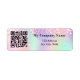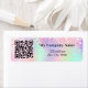 A trendy holographic background with unicorn colors and rainbow colors in blush pink, purple, mint green. Decorated with confetti. Personalize and add your own QR code to your own website or social media account, name and return address.
