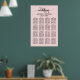 This blush pink calligraphy wedding seating chart poster is perfect for an elegant wedding. The design features a romantic and sweet flowing cursive font on a lovely and delicate light ballet pink background. This wedding poster includes enough room for up to 16 tables (160 guests). In addition to the placement of each guest, personalize this sign with the names of the bride and groom and the wedding date.