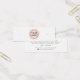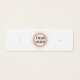 White or custom color stud earring mini product display card with social media icons and centered custom logo on a light blush pink circle. The earring guides can be adjusted by adding and removing spaces in the template field, and by moving the whole element in the design tool.