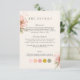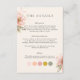Blush pink floral wedding details card with additional color palette attire information.