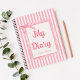 Blush Pink Coquette Stripes Bow Monogramed Diary Notebook