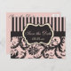 This blush pink, cream, and gray striped damask save the date postcard matches the wedding invitation and other items shown below. If you require any additional matching items, please email your request to niteowlstudio@gmail.com.