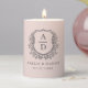 Blush Pink Crest Botanical Monogram Wedding Pillar Candle