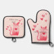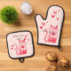 Blush Pink Cute Cat Hearts Oven Mitt & Pot Holder Set
