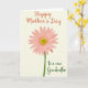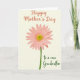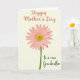 Designed with a graceful, simple look, the front features one daisy-like flower as the main focus 🌼. The bloom is a soft blush pink, with evenly spaced petals circling a textured center that shifts from light yellow-green into a warmer yellow. A slim, deep green stem rises from the lower edge, giving the flower a steady, upright presence that feels like a gentle offering ❤️. Everything sits against a creamy off-white background, with smooth, even lighting that keeps the colors soft and calm. Near the top, a short line of reddish-orange cursive-style lettering announces the occasion, floating above the flower without crowding it. Toward the lower right, a second line of deep emerald cursive-style text adds a dedicated message, like a quiet note left just for her. The pink petals fade slightly lighter at their tips, and the center shows tiny dotted texture with a subtle green-to-gold gradient.