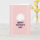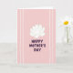 This card features a gentle blush-pink background that sets a tender, caring mood ❤️. Near the top center sits a stylized many-petaled flower in white, edged with a faint pale sage-green outline, like a calm water bloom. The simple floral emblem feels like a quiet hug, inviting a warm connection at first glance. Below the flower, the words “HAPPY MOTHER’S DAY” appear centered in rounded purplish-blue letters, standing out clearly against the soft pink. Two slim white lines run vertically along the left and right sides, slightly wavy, as if drawn with an affectionate, human touch. Small, intentional irregularities in the outlines and lettering keep the look soft and intimate rather than overly precise 🌼. The overall layout is balanced and airy, with plenty of open space around the flower and the centered text. The white flower sits above the purplish-blue message, framed by the gently undulating white side lines on the blush-pink field.
