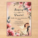 This elegant watercolor floral wedding acrylic invitation is perfect for a modern wedding. The romantic design features a sleek watercolor floral frame with a bride and groom illustration and black calligraphy on a white background.