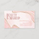 Beautiful artistic makeup artist business card. With contemporary chic classy typography font on an abstract blush pink and rose gold glitter colored marble background. Click on 'Personalize' to find the template ready to be customized with your unique business name, profession and contact information, and text of your choice. This particular pretty and unique design was made for those who like sophisticated classic ornate designs.