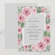 This design features a soft romantic atmosphere with delicate watercolor florals nestled against cool evergreen foliage. Hand-painted pink roses and dainty blossoms provide a feminine touch, while sprays of green pine needles evoke a crisp seasonal morning. The palette of blush pink, sage green, and cool grey creates a sophisticated aesthetic.