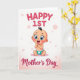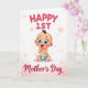 This card features a sweet digital illustration of a smiling baby centered on the front, sharing a cozy, affectionate feel that suits a new mother’s first celebration ❤️. Above the baby, the words “HAPPY 1ST” sit near the top in bright pink, standing out clearly against the light background. Below the baby, “Mother’s Day” appears near the bottom in deep magenta, flowing in a cursive-style lettering that adds a gentle, romantic touch. The baby has large blue eyes, rosy cheeks, and a tiny dark tuft of hair, with small hands clasped together as if reaching for a loving hug. A teal diaper with a small white accent keeps the look simple and sweet, while the baby’s expression suggests warm closeness and shared joy. The background fades from white into soft blush pink, giving the scene a light, airy mood with a hint of celebration 🌼. Scattered translucent pink circles float around like bubbles or confetti across the gradient backdrop.