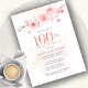 A lovely pink floral arrangement of cherry blossoms on a branch. 100th is written in large rose gold numbers. A soft pink watercolor wash gives the white background a warm touch.
