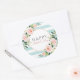 Blush Pink Floral Blue Stripes Mother's Day Classic Round Sticker