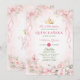 Blush Pink Floral Bow Ribbon Quinceañera Invitation
