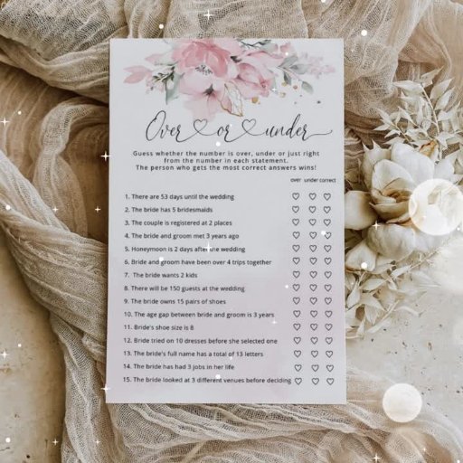 So pleased with this product! It showed up on time and in perfect condition. Affordable and of good quality. I ordered 30 for my friend’s bridal shower and they were all accounted for. The bride LOVED them and we had a lot of fun customizing the answers. Would recommend to anyone hosting a bridal shower or bachelorette party with people who like to play fun games! All the guests got really into it! Spot on colors and the paper felt of good quality, as well, though perhaps could be a bit thicker in general. (I ordered the thickest option)