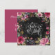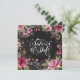Pretty blush pink flower frame on black chalkboard with white 'Save the Date' text. The back of the card is a complimenting dark blush pink. This colour can be changed to suit your requirements.