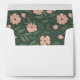 Add a special touch to your wedding invitation mailing with custom printed envelopes. These envelopes have a simple blush pink flower illustration on the front and a coordinating floral pattern against a dark green background on the inside. The envelope flap is ready to be customized with your name and return address.