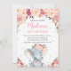 Blush Pink Floral Cute Elephant 1st Birthday Invitation