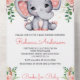Blush Pink Floral Cute Elephant Baby Shower All In One Invitation