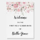 Pretty blush pink roses form an elegant border on this First Holy Communion sign.