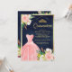 Blush Pink Floral Gown Navy Blue Gold Quinceanera Invitation