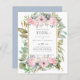 Pretty Watercolor Flowers in blush pink and dusty blue with sage green leaves and foliage feature on this modern wedding item.
