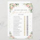 The design on the party game is attractive and very sturdy. It is made from heavy card stock. It is larger than it appears on line. Very happy with this product. The lettering on the this wedding game is large and clear. No need to wear glasses to read the questions.