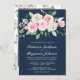 Blush Pink Floral Navy Blue QR Code Wedding Invitation
