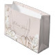 Blush pink floral personalized paper bag. Feminine branding design with golden khaki flowers on pink abstract background for your small business. Edit text with easy to use Zazzle editing tool! Add the name and business. Visit the shop to see all the collection. There are planner, notebook, note pad, binder, pen, clipboard and so much more available. And of course, sanitisers and masks are also in the shop!