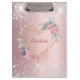 Blush pink floral silver glitter monogram name clipboard