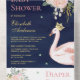 Blush Pink Floral Swan Princess Navy Baby Shower All In One Invitation