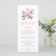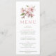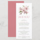 Bring a romantic, elegant touch to your wedding reception table with this blush pink floral menu card, featuring delicate cherry blossom illustration on a crisp white background. The refined design uses pastel pink and green tones combined with sophisticated serif and script fonts to present each course beautifully, from entrée to dessert. A perfect complement for spring weddings, garden celebrations, or feminine floral themes, this menu card blends timeless charm and modern style, helping set the tone for an unforgettable meal.