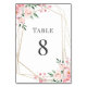 Customizable wedding table number in clean white. Featuring blush pink floral bouquet with a gold geometric frame.